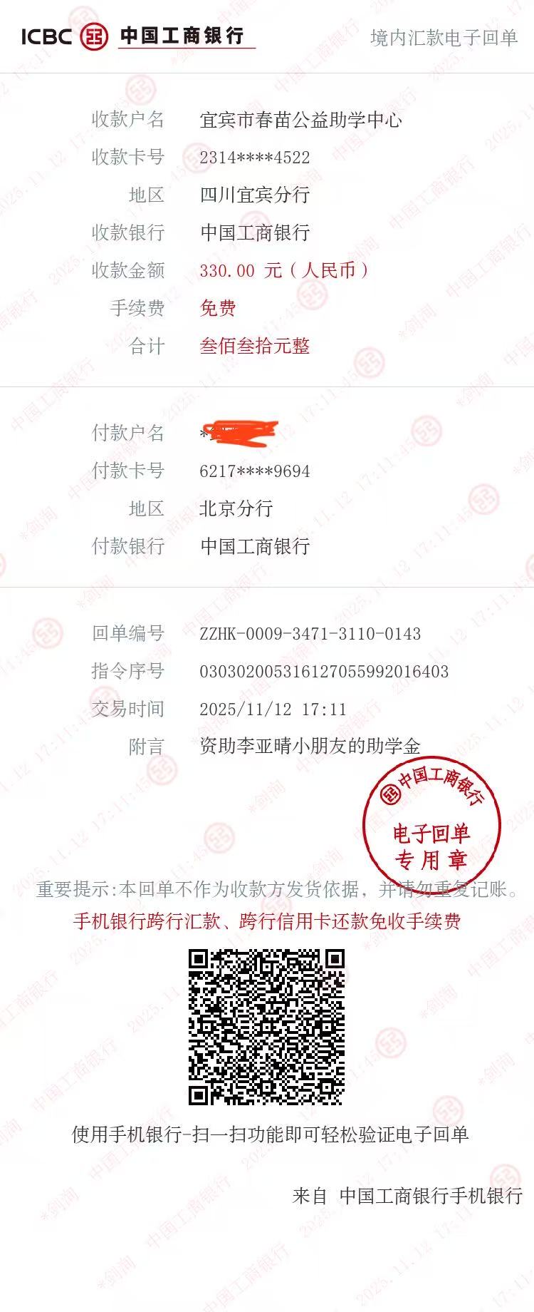您的爱心让我们感受到了社会的温暖,您的帮助让我们渴望上进的心倍受感动。感谢您!