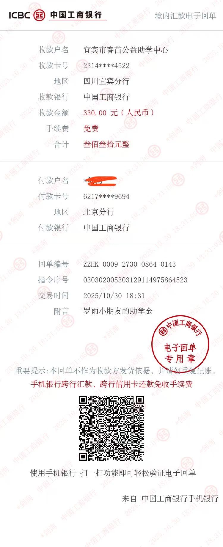 您的爱心让我们感受到了社会的温暖,您的帮助让我们渴望上进的心倍受感动。感谢您!