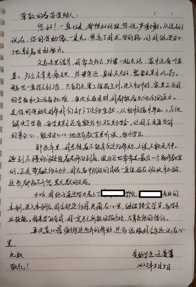 【原创】 【原创】 受助学生反馈信:王曼蕾