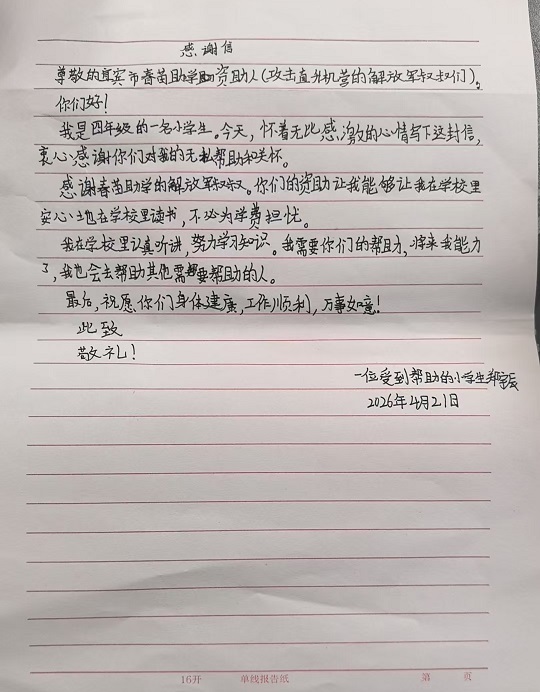 【原创】 受助学生反馈信:郑宇辰