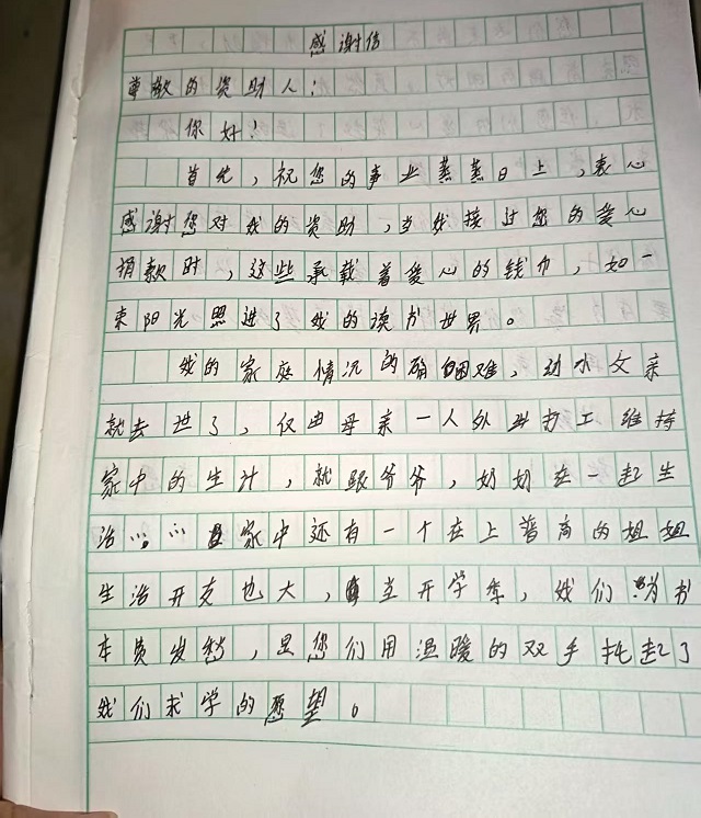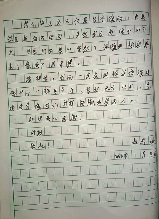 【原创】 受助学生反馈信:赵思婷