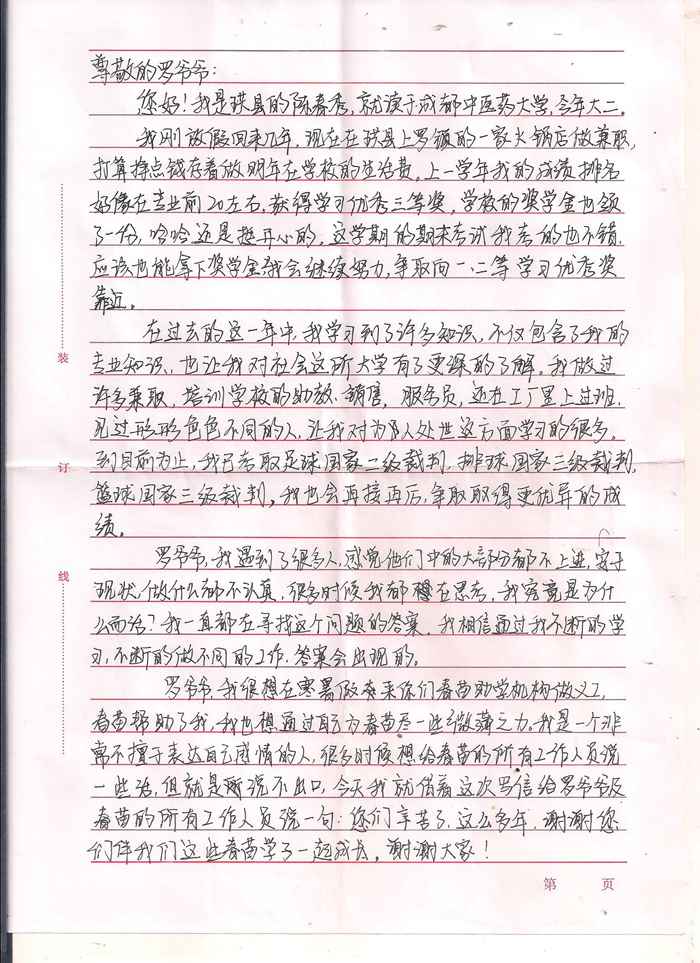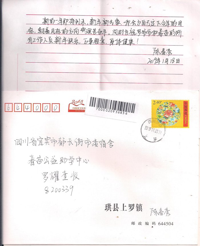 受助学生反馈信:陈春秀