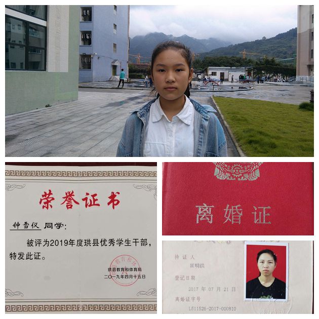 孩子学习勤奋刻苦,小小年纪便懂得照顾自己和他人,积极上进,表现优异,学习成绩一直不错,多次获得班级学校和上级主管部门的奖励(在2019年荣获县优秀学生干部)。现在就读珙一中初一年级,因家庭因素,影响了孩子学习提高。