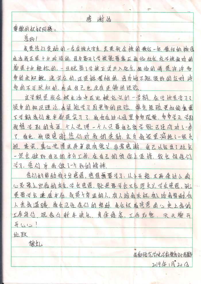 受助学生反馈信:易露莎