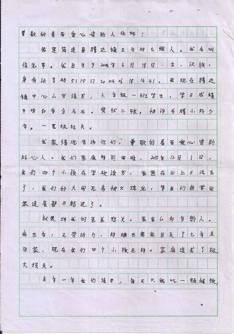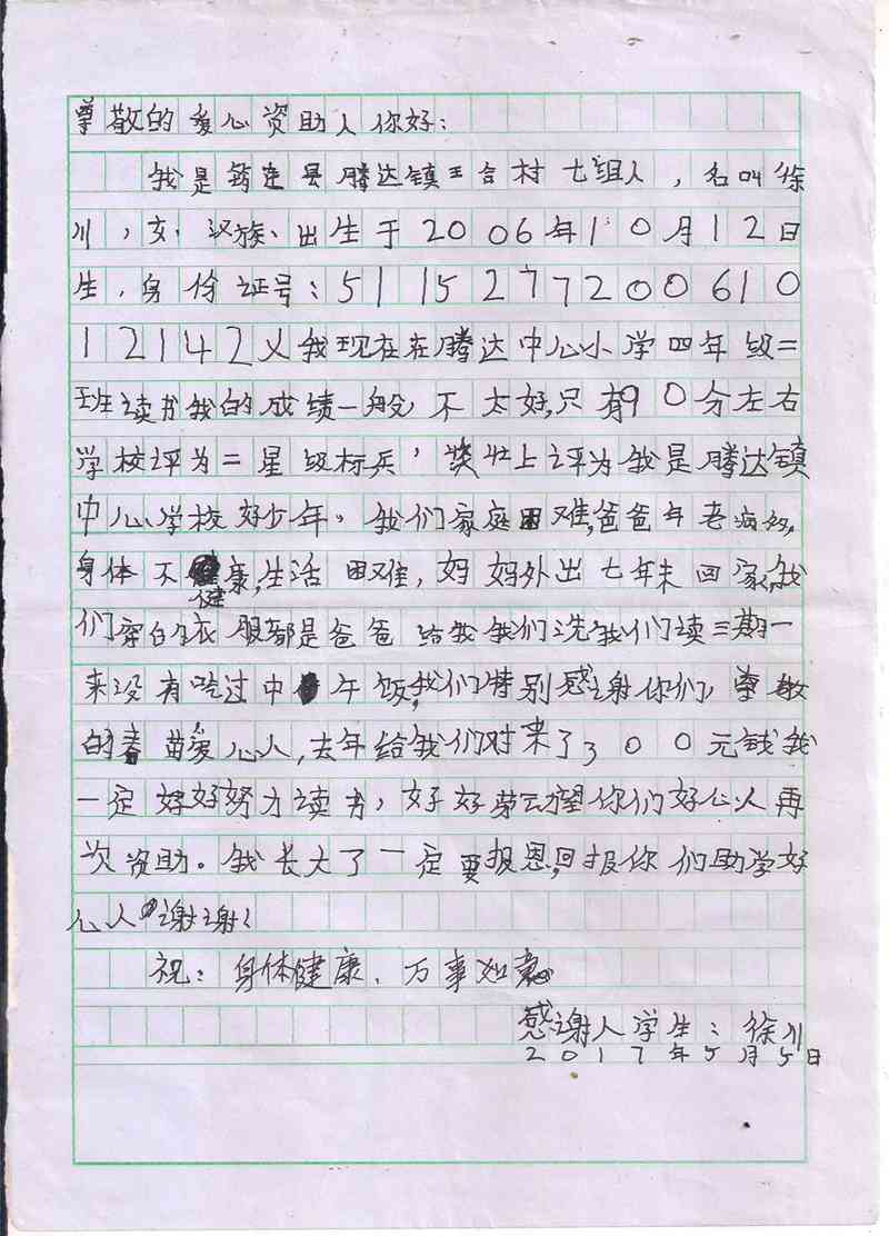 受助学生反馈信:徐川 徐术 徐先苹 徐仙