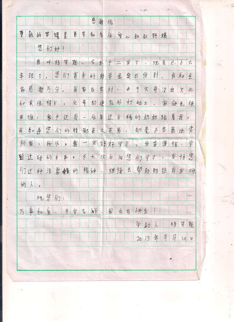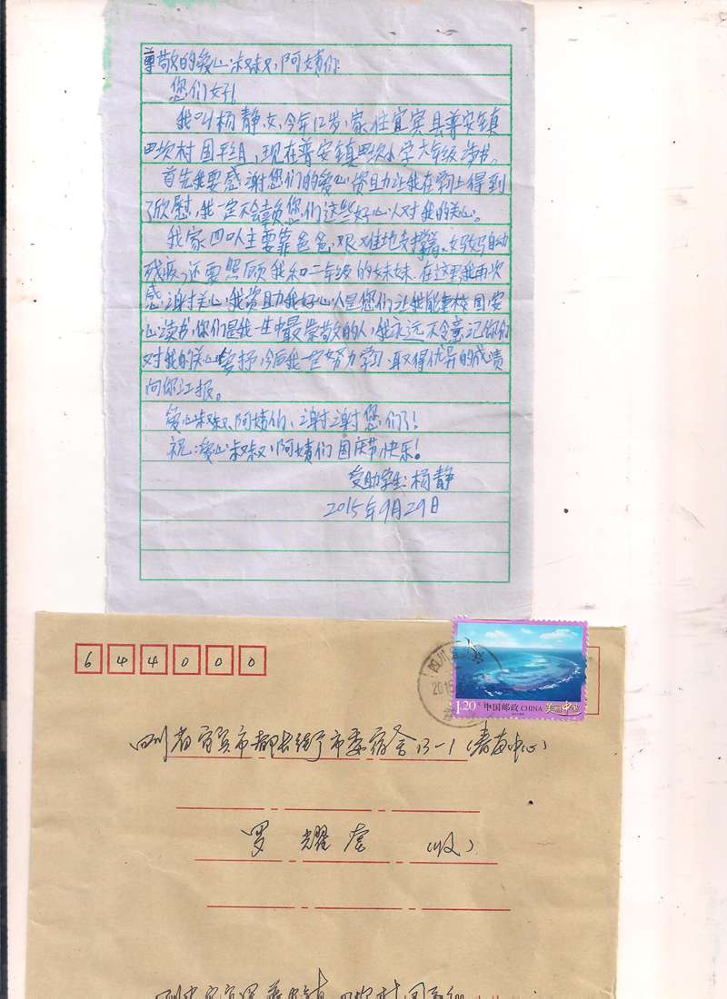 受助学生反馈信:杨静 杨贤聪