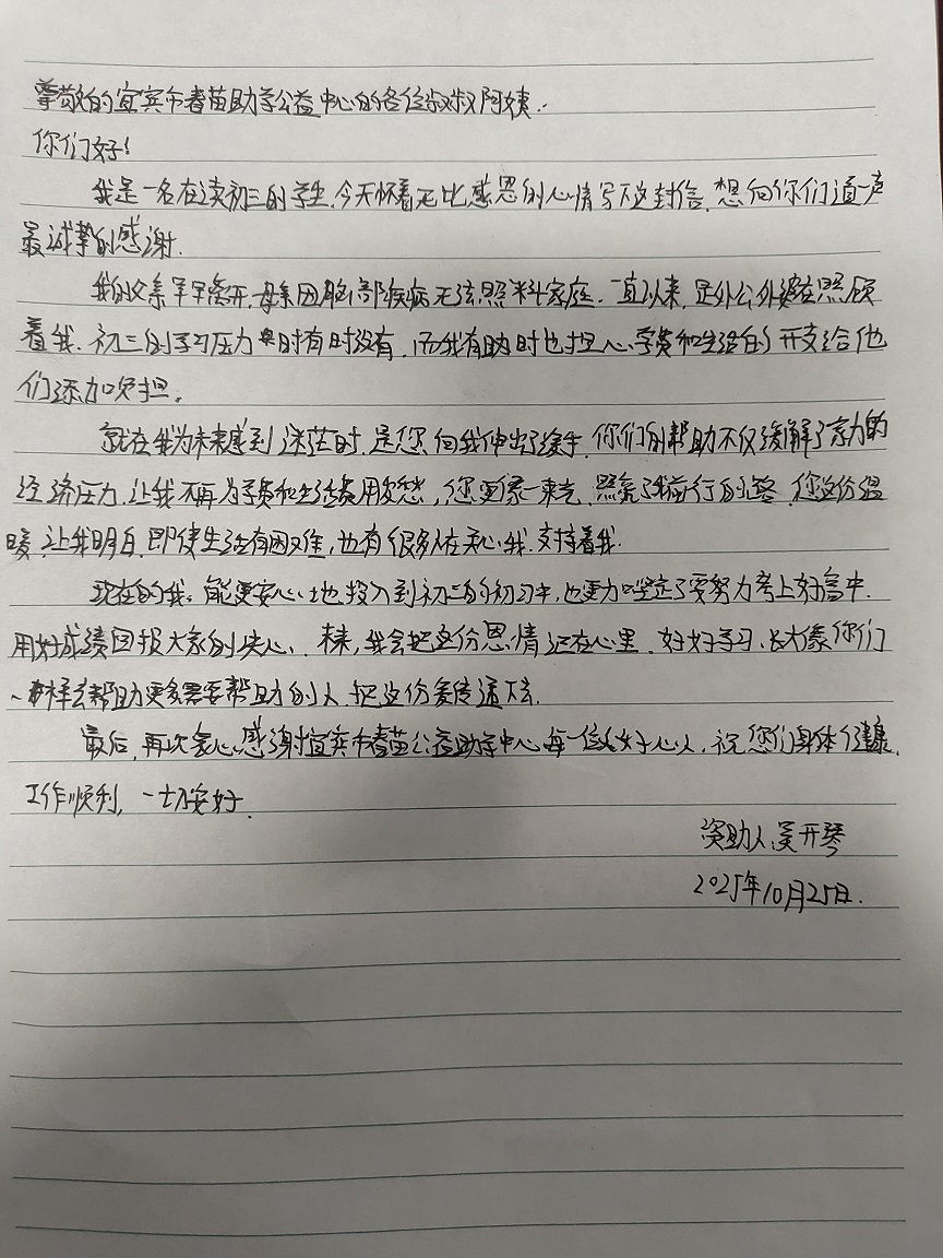 【原创】 【原创】 受助学生反馈信:吴开琴