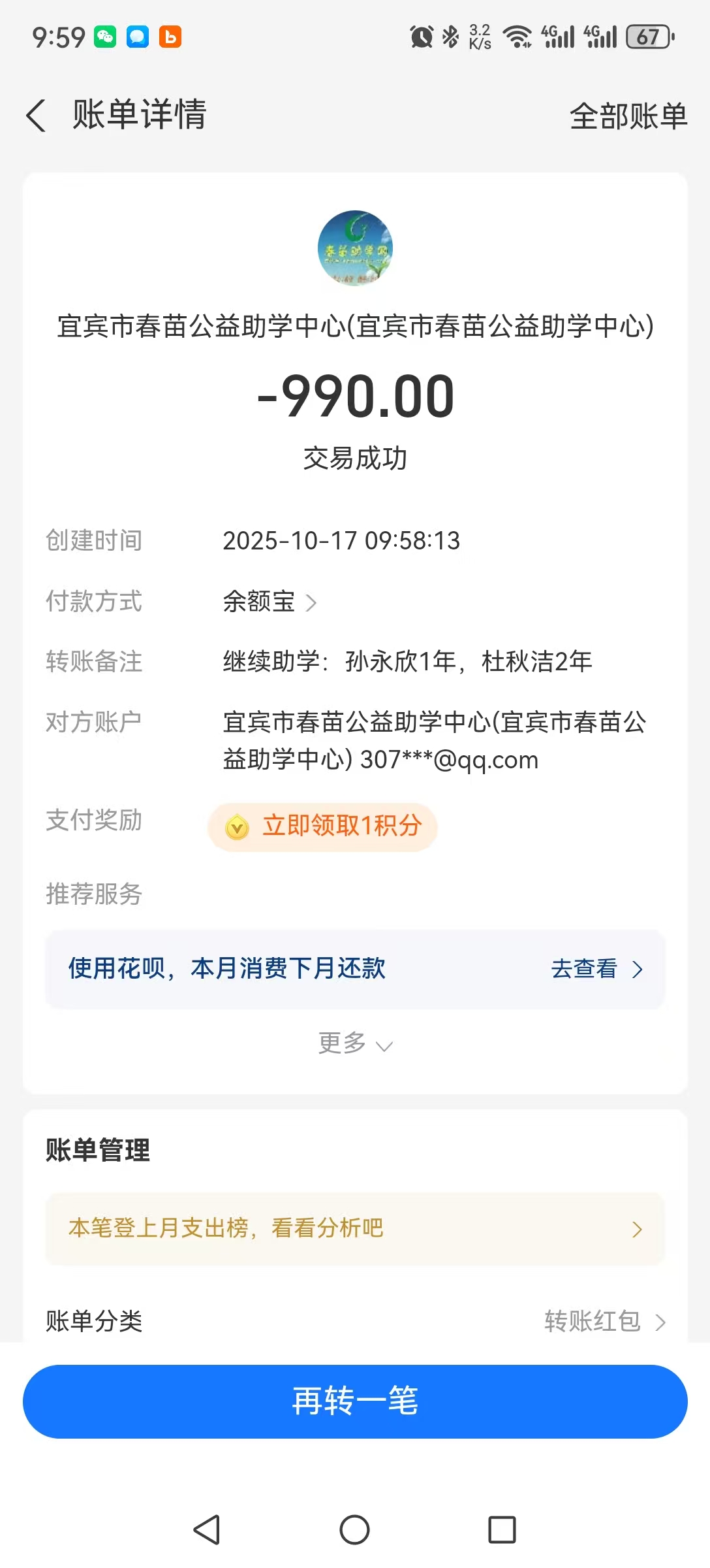 【原创】 继续助学:孙永欣1年,杜秋洁2年