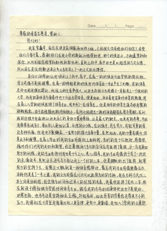 受助学生反馈信: 罗鑫宇