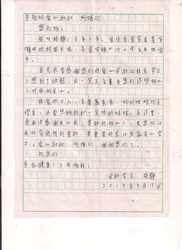 受助学生反馈信:杨静