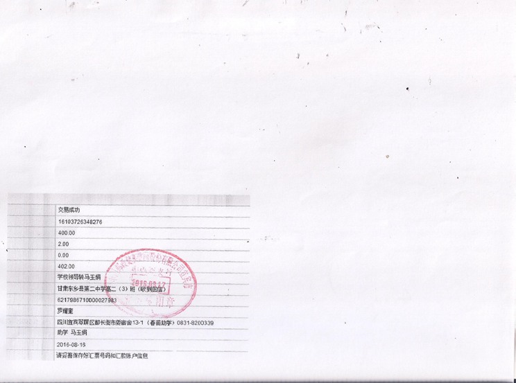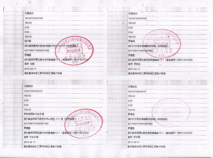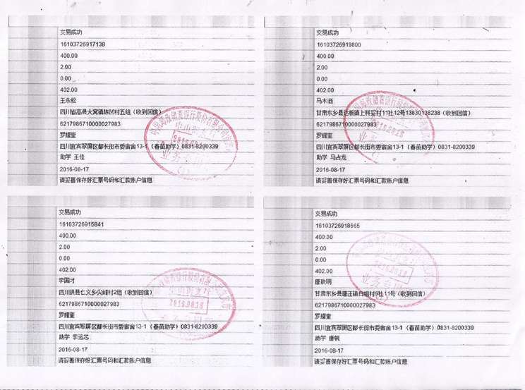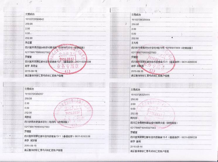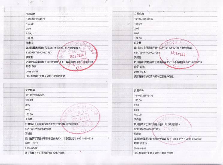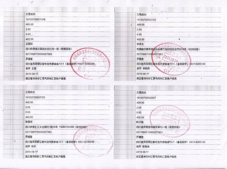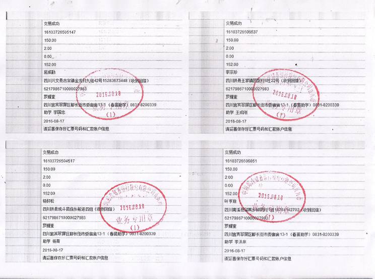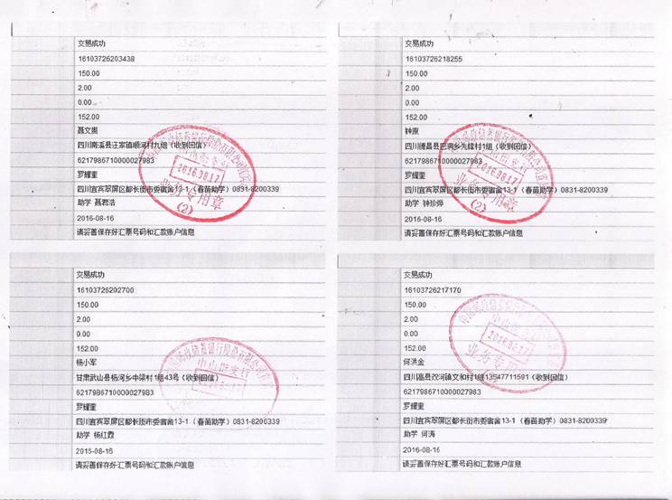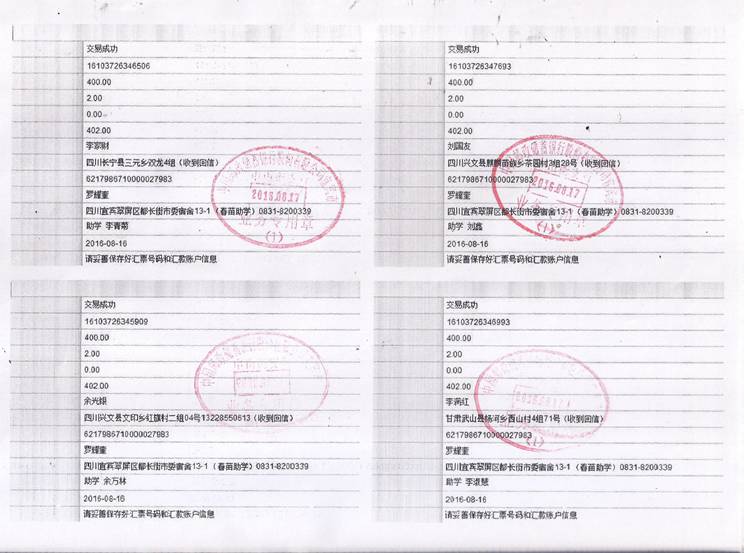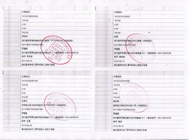 2016年秋期汇款发放凭据(二)