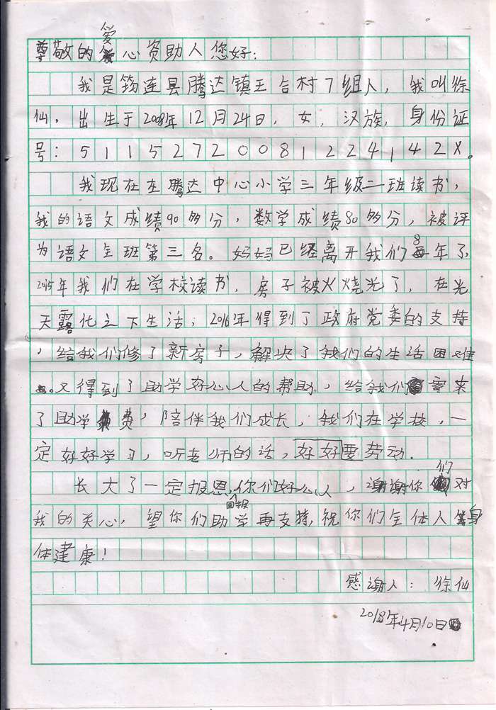 受助学生反馈信:徐川 徐术 徐先苹 徐仙