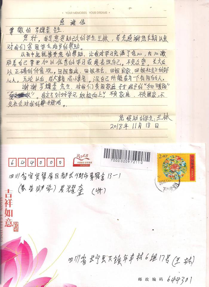 受助学生反馈信:王林