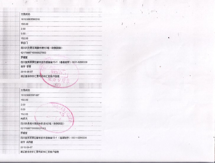 2016年5月助学款发放凭据(二)