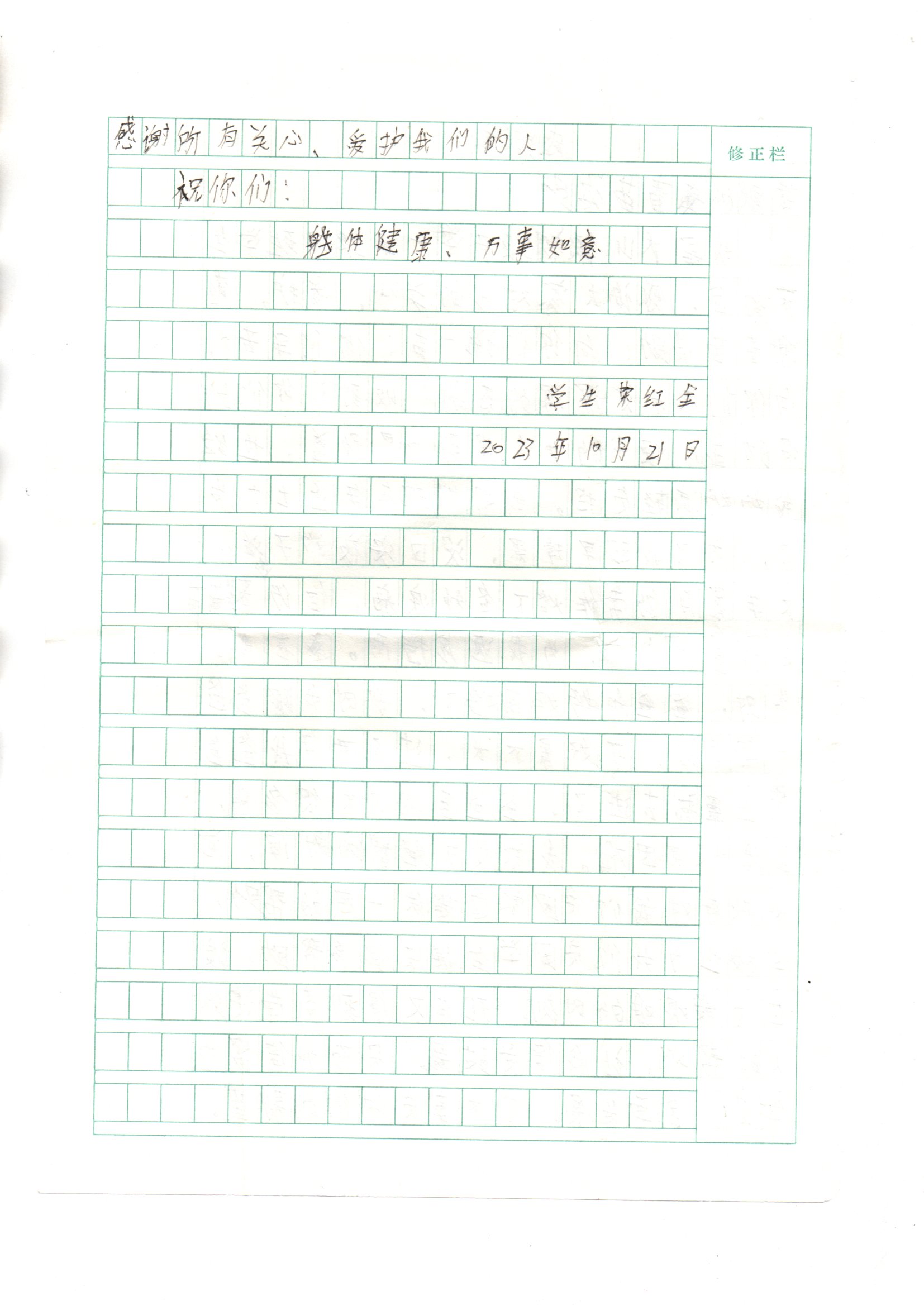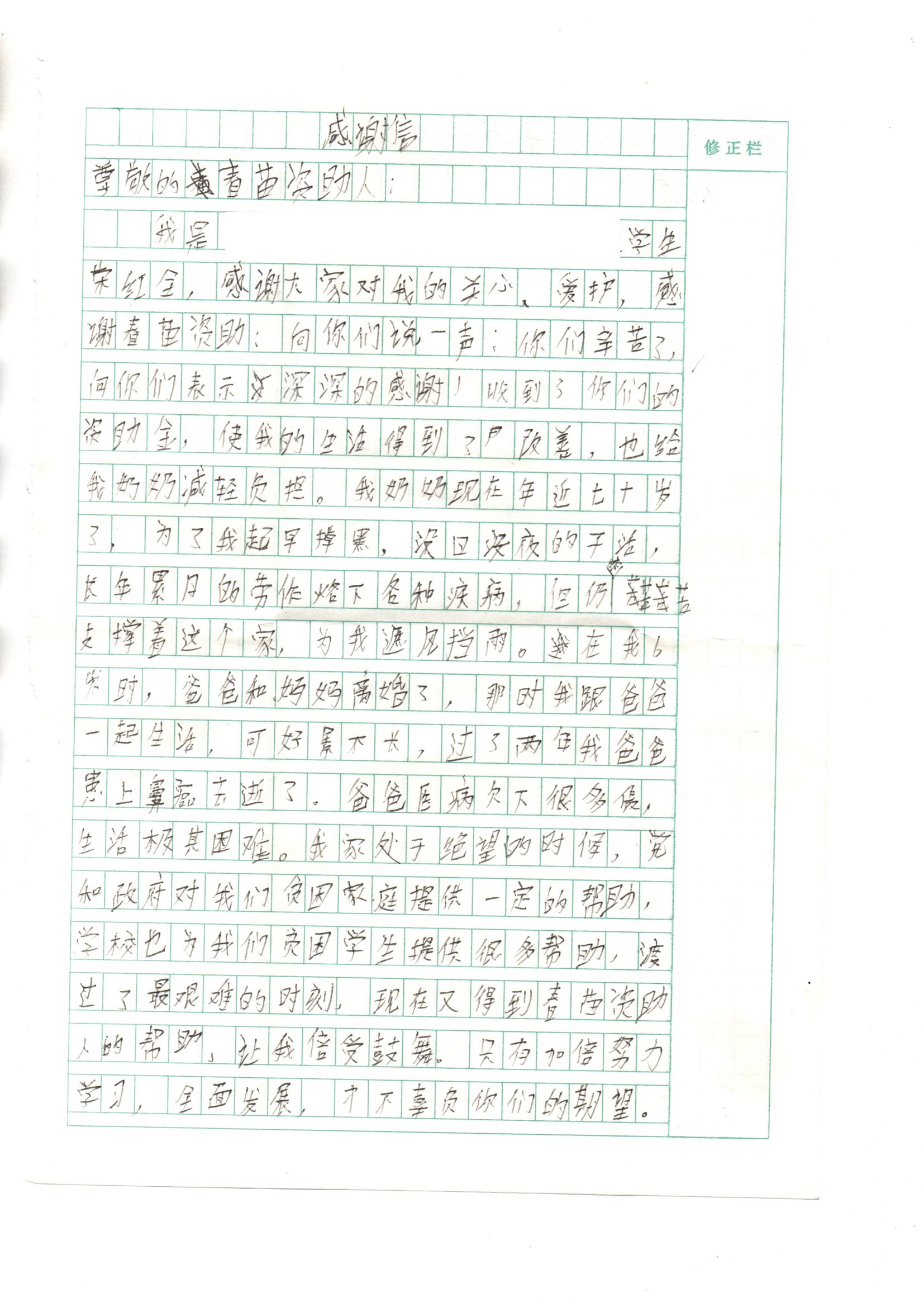 受助学生反馈信:荣红全