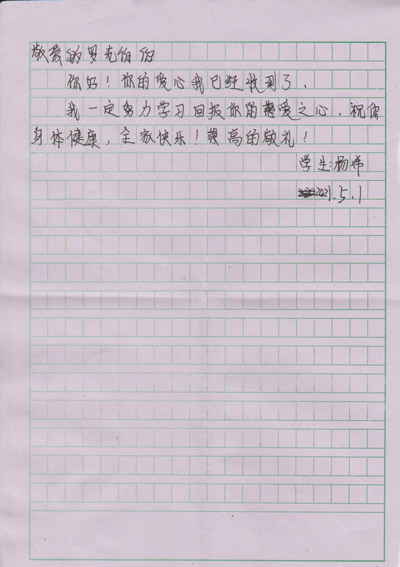 受助学生反馈信:杨希