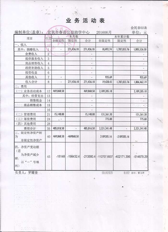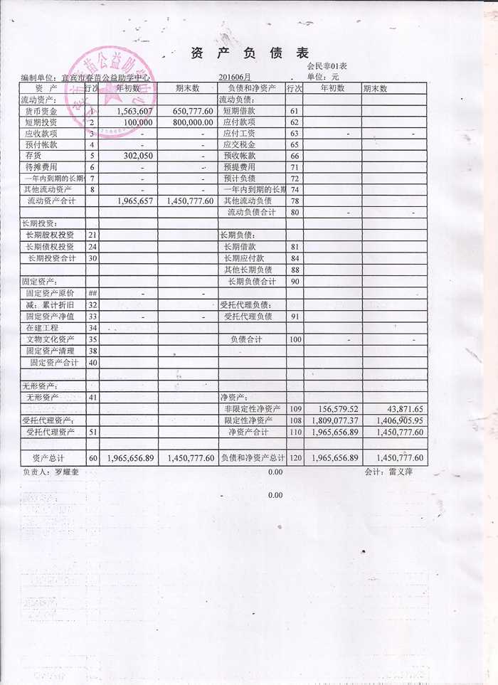 2016年6月春苗财务报表公示