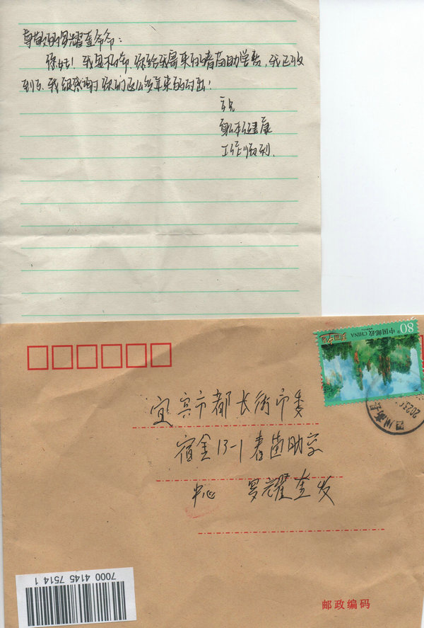 受助学生反馈信:杨希