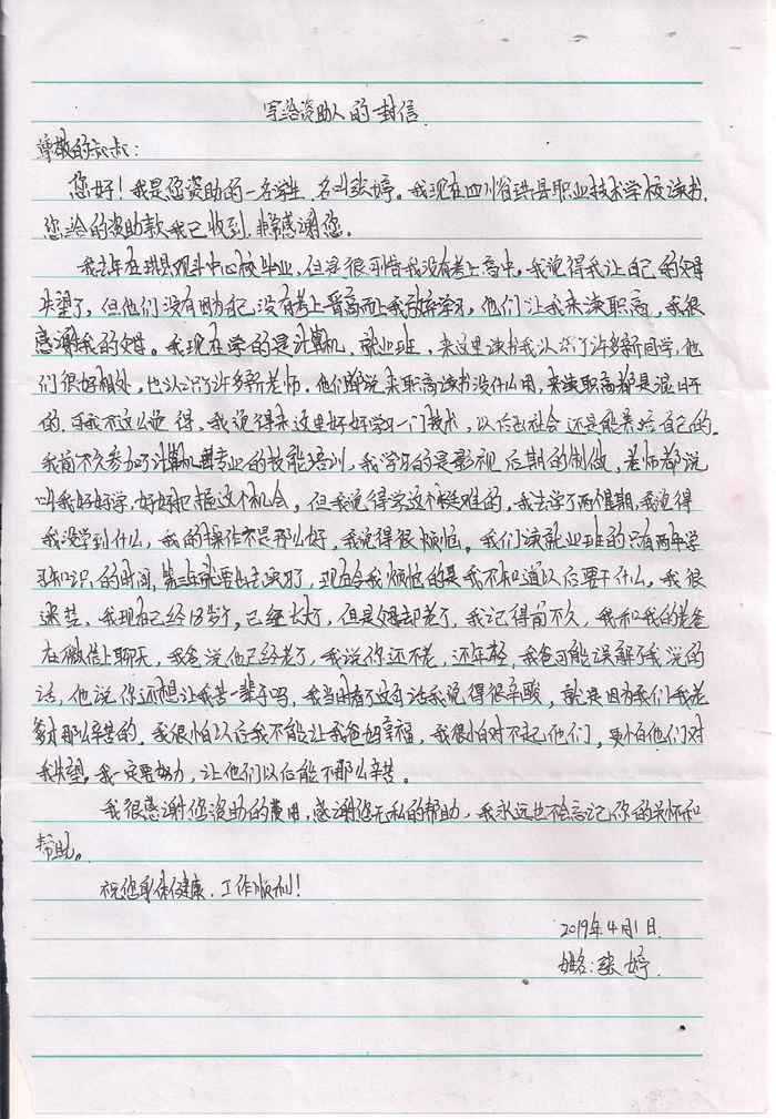 受助学生反馈信:张婷1