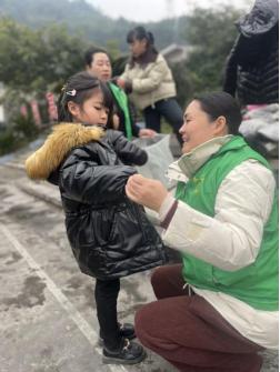 查走访,徒步穿梭村寨与学生、家长面对面交流,参与宜宾市春苗公益助学中心在玉屏小学的“侨爱‘温暖包’”羽绒服发放活动。